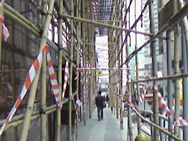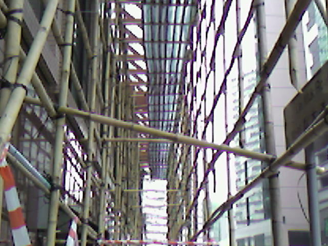 四平八穩的建築以供職員可於竹棚上工作